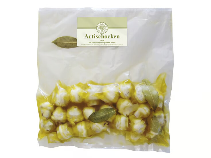 Artischocken* 81,1%, Rapsöl* 18% (kaltgepresst), Meersalz, Lorbeer*, Säureregulator: Zitronensäure, Antioxidationsmittel: Ascorbinsäure