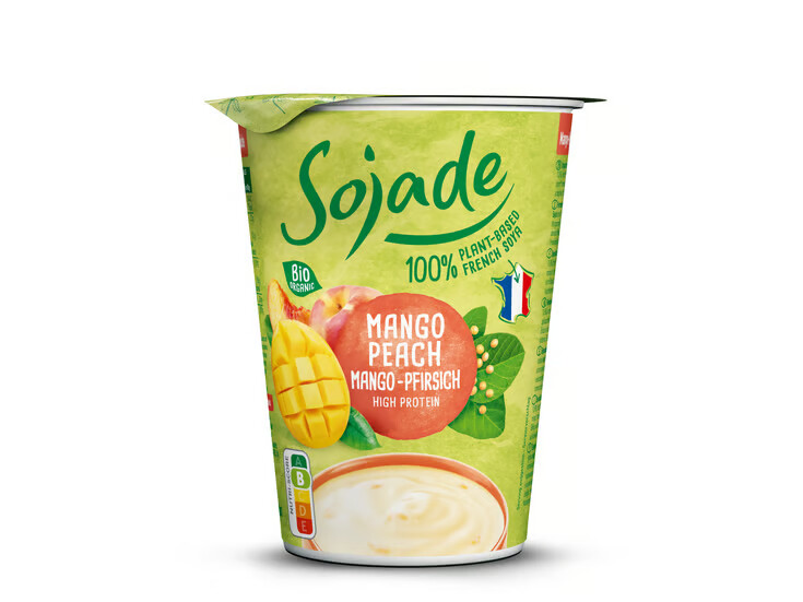 SOJAZUBEREITUNG* 78% (Wasser, SOJABOHNEN*10, 8%), Frucht* 9% (Mango* 72%, Pfirsich* 28%), Rohrohrzucker*°, natürliches Pfirsicharoma*, natürliches Mangoaroma*, Tapiokastärke*, Zitronensaftkonzentrat*, Verdickungsmittel: Johannisbrotkernmehl*, ausgewählte Kulturen darunter Bifidus und Lactobacillus acidophilus.