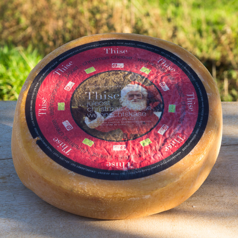 Der Weihnachtskäse von der Dänischen Molkerei Thise hat einen vollmundigen Geschmack und fein-cremigen Teig. Der Käse wird nur zur Zeit der Winter - Sonnenwende vom 21.12. bis 25.12. hergestellt. Die Laibe reifen danach ca. 40 Wochen und verbringen 30 Wochen dieser Zeit im vorteilhaften Klima der Hjerm Kalkhöhle. Die Bedingungen dort sind rau aber optimal: die Luftfeuchtigkeit und die Temperatur sind konstant. In Kombination mit der Luftzusammensetzung in der Höhle, können die Käse ihren ganz eienen Charakter entwickeln.